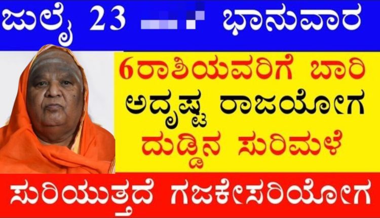 ಜುಲೈ 23 ಭಾನುವಾರ 6 ರಾಶಿಯವರಿಗೆ ಬಾರಿ ಅದೃಷ್ಟ ರಾಜಯೋಗ ದುಡ್ಡಿನ ಸುರಿಮಳೆ ಸುರಿಯುತ್ತದೆ ಗಜಕೇಸರಿಯೋಗ ಶುರು