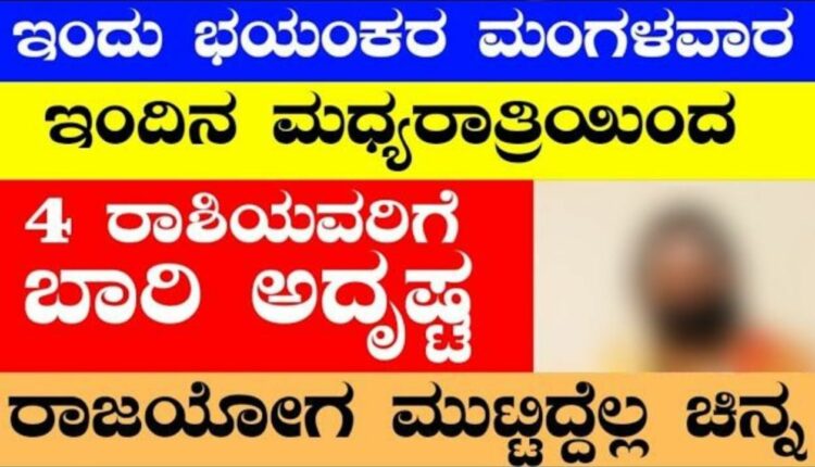 ಇಂದು ಭಯಂಕರ ಮಂಗಳವಾರ ಇಂದಿನ ಮಧ್ಯರಾತ್ರಿಯಿಂದ 4 ರಾಶಿಯವರಿಗೆ ಬಾರಿ ಅದೃಷ್ಟ ರಾಜಯೋಗ ಮುಟ್ಟಿದ್ದೆಲ್ಲ ಚಿನ್ನ ಗುರುಬಲ