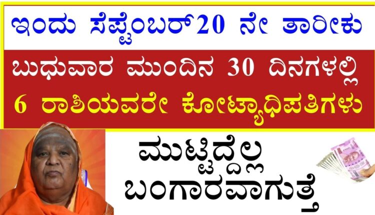 ಇಂದು ಸೆಪ್ಟೆಂಬರ್ 20 ಬುಧುವಾರ ಮುಂದಿನ 30 ದಿನಗಳಲ್ಲಿ 6 ರಾಶಿಯವರೇ ಕೋಟ್ಯಾಧಿಪತಿಗಳು ಮುಟ್ಟಿದ್ದೆಲ್ಲ ಬಂಗಾರವಾಗುತ್ತೆ