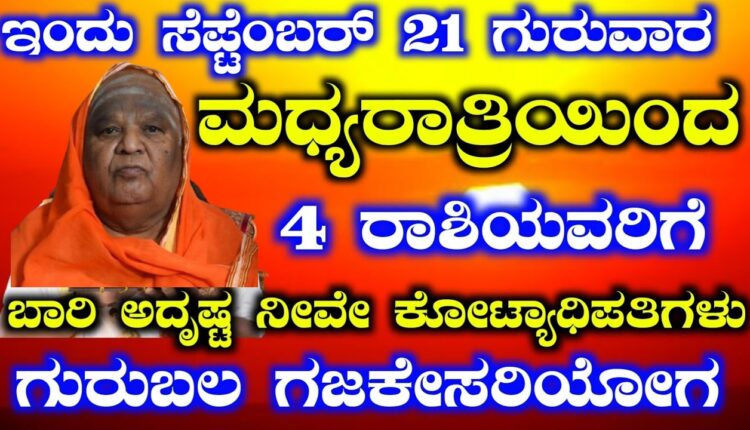 ಇಂದು ಸೆಪ್ಟೆಂಬರ್ 21 ಗುರುವಾರ ಮಧ್ಯರಾತ್ರಿಯಿಂದ 4 ರಾಶಿಯವರಿಗೆ ಮಾತ್ರ ಬಾರಿ ಅದೃಷ್ಟ ನೀವೇ ಕೋಟ್ಯಾಧಿಪತಿಗಳು ಗುರುಬಲ