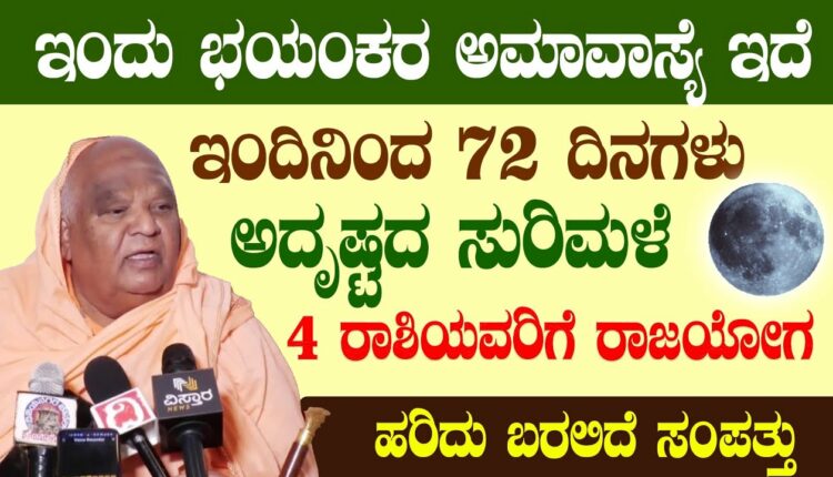 ಇಂದು ಭಯಂಕರ ಅಮಾವಾಸ್ಯೆ ಇದೆಇಂದಿನಿಂದ 72 ದಿನಗಳುಅದೃಷ್ಟದ ಸುರಿಮಳೆ4 ರಾಶಿಯವರಿಗೆ ರಾಜಯೋಗಹರಿದು ಬರಲಿದೆ ಸಂಪತ್ತು!