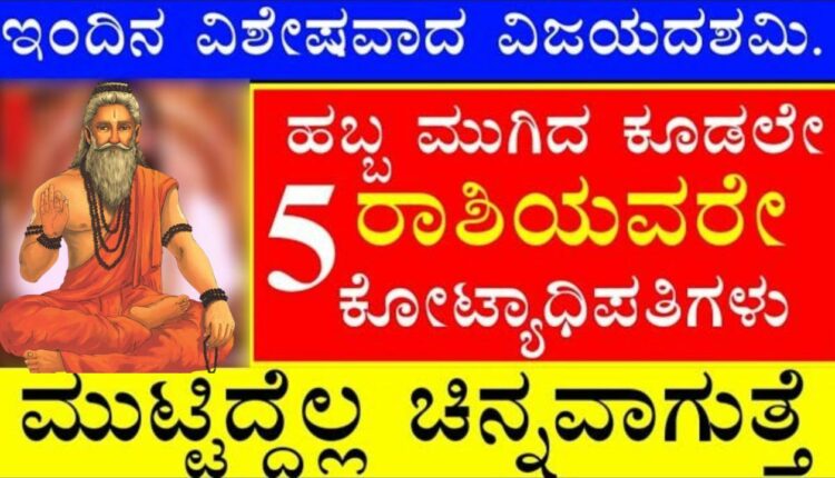 ಇಂದಿನ ವಿಶೇಷವಾದ ವಿಜಯದಶಮಿ ಹಬ್ಬ ಮುಗಿದ ಕೂಡಲೇ 5 ರಾಶಿಯವರೇ ಕೋಟ್ಯಾಧಿಪತಿಗಳು. ಮುಟ್ಟಿದ್ದೆಲ್ಲ ಚಿನ್ನವಾಗುತ್ತೆ