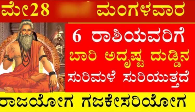 ಮೇ 28 ಮಂಗಳವಾರ 6 ರಾಶಿಯವರಿಗೆ ಬಾರಿ ಅದೃಷ್ಟ ದುಡ್ಡಿನ ಸುರಿಮಳೆ ಸುರಿಯುತ್ತದೆ ರಾಜಯೋಗ ಗಜಕೇಸರಿಯೋಗ